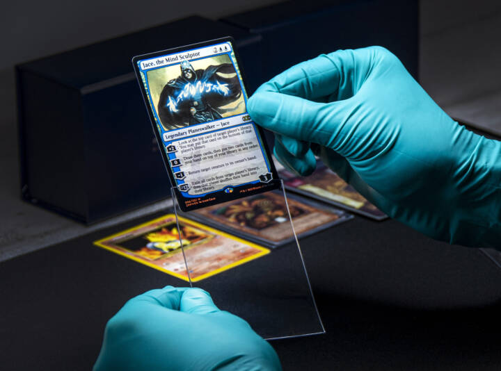 Nous avons à cœur de traiter vos cartes comme des pièces de musée, c’est pourquoi nous veillons en permanence à la mise en œuvre scrupuleuse de notre protocole de manipulation où chaque étape y est rigoureusement codifiée. Pour s’assurer de ne jamais altérer la condition de vos cartes, notre équipe travaille avec minutie en portant systématiquement des gants neutres.